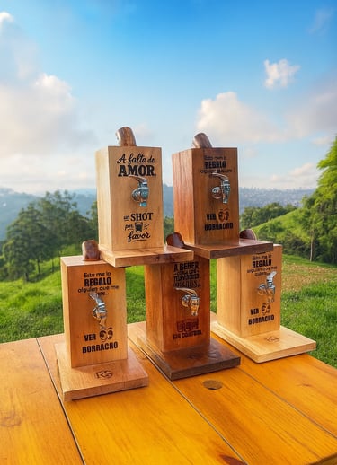 En RustiShot, nos dedicamos a la elaboración de dispensadores de licor excepcionales, diseñados de forma artesanal con acabados en madera que destacan la calidez y autenticidad de cada pieza.